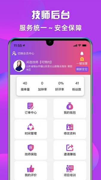 4、【我的】可以查看自己关注的技师,也可联系客服,技师应聘等体验。