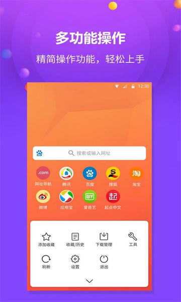 * 海量内容:支持各大搜索引擎,海量新闻头条,免费小说影视,网址导航