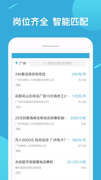 查看岗位工资结算方式,选择满意的职位即可报名参与;
