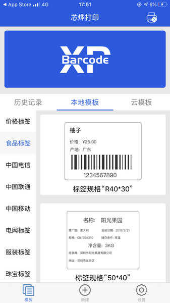 XPBarcode是一款专为芯烨条码打印机设计的移动端应用,支持蓝牙、WIFI和USB连接。软件界面简洁,功能强大,可以记录历史模板并分类管理,方便用户高效使用。我用过类似软件,感觉这款在操作上更直观,尤其是编辑和打印功能很实用。