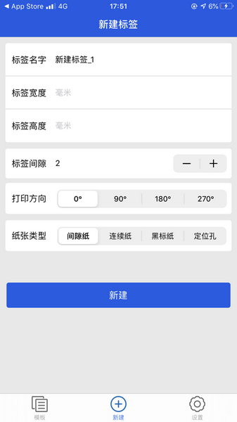 APP同时支持不同的纸张类型:标签纸、票据纸、黑标纸等。