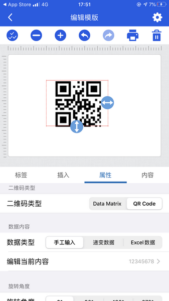 APP包含了条形码、二维码、文本、图片、时间、表格、图形等功能。