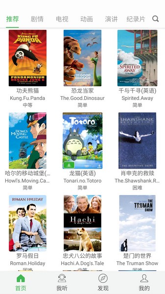 这款看电影学英语的App真的很棒!它利用电影来教英语,不仅吸引人还能学到纯正发音和语法。功能特别多,比如独立字幕、播放控制、重复片段、慢放、锁屏播放等等,方便极了。还有听力练习、生词高亮、投屏播放、离线视频这些实用功能,完全满足学习需求。App里资源丰富,有电影、动画、演讲、纪录片等,类型多样,随时都能找到想看的内容。更新也很及时,比如最近增加了单句循环功能,用户体验更好了。我个人觉得这个App非常适合想要通过看电影学英语的人,既有趣又能提高效率,推荐给大家!