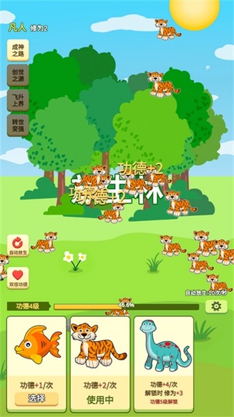 你释放的越多,积累的价值就越多,随着等级的提升,你可以解锁价值更高的动物。