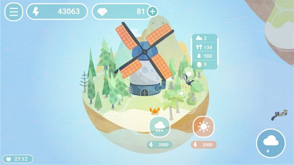 游戏的美术风格像绘本一样治愈,音乐也会随着岛上生态的变化而改变。不过,玩这个游戏需要耐心和策略,尤其是要平衡水循环和生物数量,稍不留神岛可能会重新变回荒漠。新手攻略里提到的浇水与动物的关系、风车与道具的使用,还有如何获取钻石等信息都很实用。