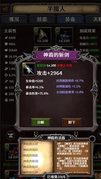 2、后期必备装备为入魔,灾变,高增伤,挂机速刷必备神器。