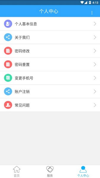 4、点开个人中心,可以查看个人基本信息、密码修改、密码重置、变更手机号等。