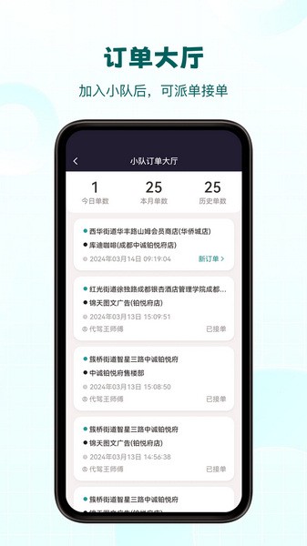 3、在这里,用户可以一键创建订单开始服务,快速为车主进行代驾;