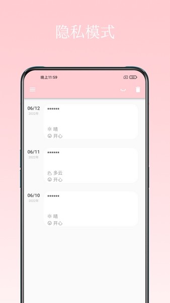 隐私模式,任何人都看不到你的记录,随时保护,不会遗失;