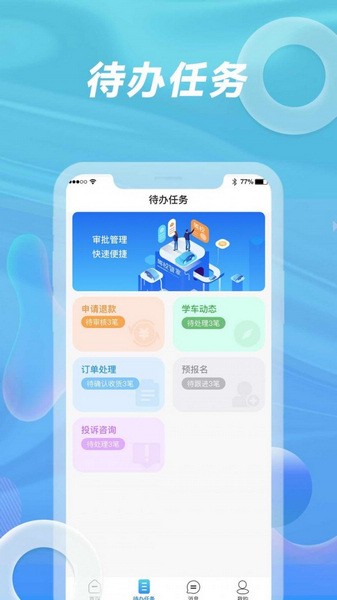 浙里学车驾校版APP是一款专为驾校们量身定做的办公软件,不仅可以让大家更好地管理学员信息,也能够掌握大家的学习和培训情况,还有更多更新的驾考动态。软件还有便捷的待办功能,各种重要的事项大家都能够第一时间在这里获取,还能够了解预报名情况和处理异常的报名订单,对于需要退款的学员,用户也能够在浙里学车驾校版上快速进行处理。