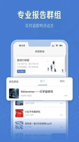 【群组】上百热门领域的不同群组,群组报告实时更新,马上加入获取最新行业动态;