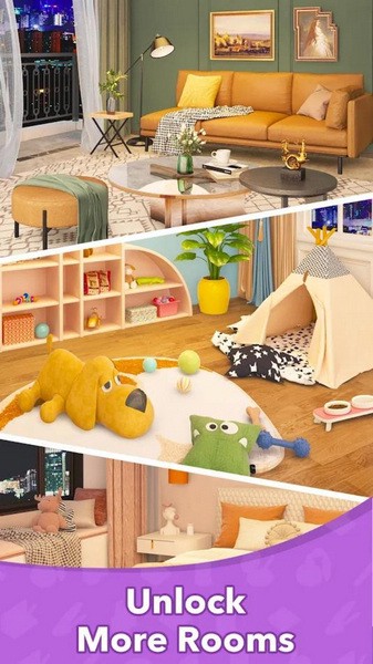 获得道具并装扮到身上,通过合成同类项玩法可以获得精美家具。