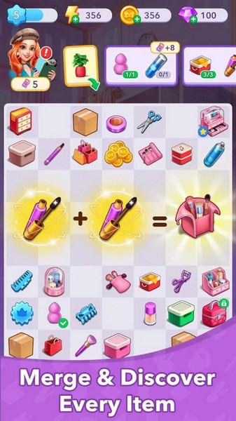 时尚有趣的休闲合并造型设计游戏,游戏中玩法简单易上手,点击上面有闪电标记的项目,将相同的项目拖到一起创建一个新项目,全面检查客户订单,合并商品完成订单。