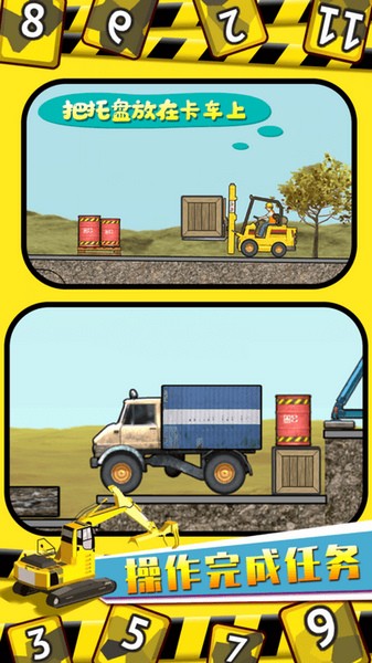 玩家挑战各种任务,需要根据场地需求改造工程车,任务非常简单;