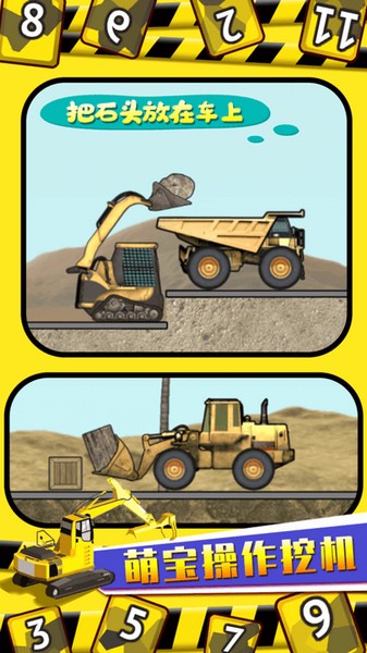 手指触屏操作,适合儿童的玩法,点击屏幕驾驶挖掘机工作啦!