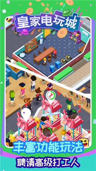 皇家电玩城无限金币版是一款模拟经营类游戏,玩家扮演电玩城老板,通过开发各种娱乐项目、广告宣传和提升服务来吸引顾客。游戏中有摩托区、射击区、篮球区等多样设施,后期还能开卡丁车场和奶茶店,形成一条龙服务。游戏特色包括设施丰富、简单有趣、操作轻松,还有无限金币版带来更自由的体验。