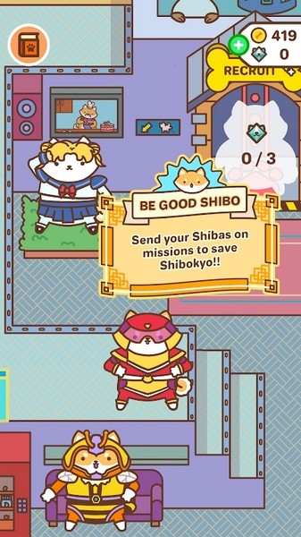 在柴犬部队招募各类柴犬,派遣完成任务,收集各种宝藏、财宝,解锁各式各样图鉴,装饰你的家具,让游戏充满可玩性。