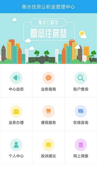 便民服务:办事指南、常见问题、网点查询、合作楼盘、咨询建议投诉和服务评价等服务事项。