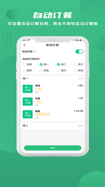 可设置自动订餐日期,再也不用怕忘记订餐啦
