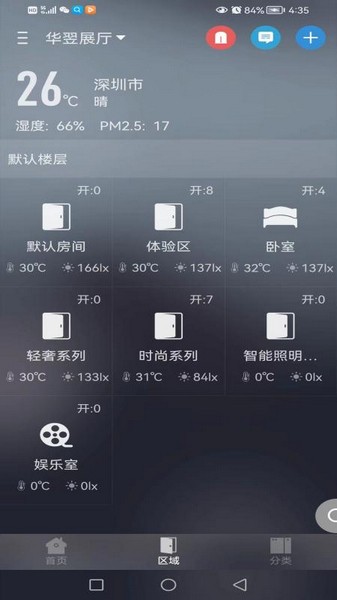 分为不同控制区域,不同房间的设备运作状态不一样;