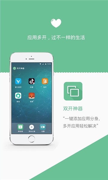 神器作为多开分身的好选择,所有应用双开、无限多开分身。一部手机轻松实现如:分身、多开、双开、分身版、小号、QQ多开、派派多开、多开、支付宝多开、游戏多开等所有应用的多开分身!