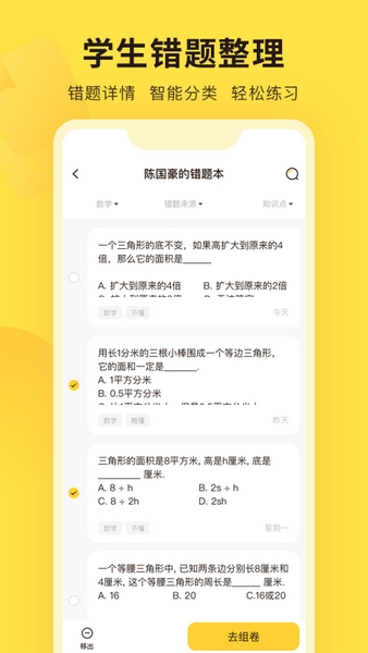 APP里还支持一键组卷和打印,老师用起来也很方便,特别是给学生布置针对性练习的时候。总体来说,这款工具对老师和学生都很友好,尤其是对于那些喜欢错题本的同学来说,绝对是个神器!希望以后能继续优化功能,让学习变得更高效!