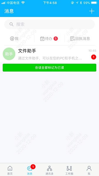 另外,app里还有统一通讯录功能,把公司内外的联系人都同步过来了,找人方便多了。重要消息还能发回执,发送后状态一目了然,再也不用担心信息被遗漏了。