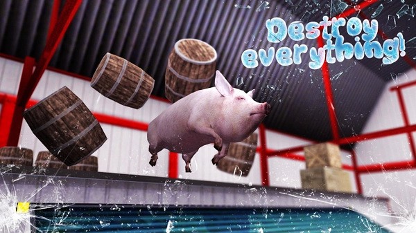 您可以使用左侧的操纵杆移动您的猪,右侧的跳跃按钮使其飞行并轻扫以环顾四周。您可以使用右侧的点击按钮以令人敬畏的猪力粉碎物体。