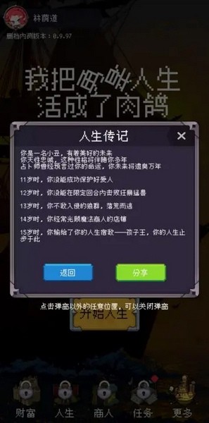 2、在你完成一次人生后,你的人生史诗传记将被自动书写,可以一键分享
