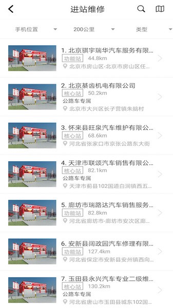 服务查询:查询车辆当前位置周边的服务站,并可预约维修