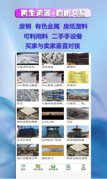 滦创废料废钢app是一款便捷且人性化的废料再生资源服务平台,在这里,不仅可以帮助你线上寻找相关卖家,同时能够直接发送相应的采购需求信息,而且支持实时在线查看详细发布信息,无论是能源的需求亦或是供应信息都可以让你清晰明了的掌握,除此之外,这款人爱你建还能够让你尽情挑选自己所需要的各种再生能源,让你的交易更加方便和快捷。