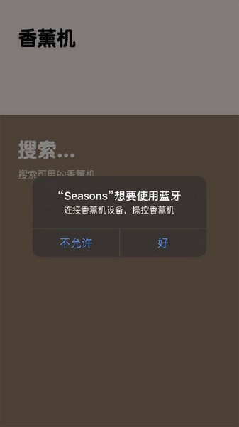 Seasons软件是一款专为品牌旗下的智能香薰机打造的控制软件,大家在手机上就可以控制和管理香薰机,还能够自由设置香薰机的开启时间和运行时长等。软件界面美观简约,只需要通过蓝牙连接,大家就能够享受全新的智能香薰服务,对于香薰机运行的档位、油型和灯光等也可以自由进行调整和修改、控制。此外,Seasons还能够同时控制多台智能香薰机进行工作。