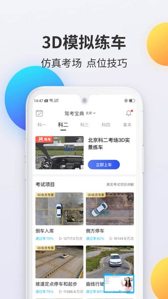 驾考宝典科目二手机版是一款十分好用的科目二专项练习软件。这款软件包含完整的科目二教学课程资源和配套练习项目,帮助用户彻底地理解科目二考试的每一个环节和重点,采用最新的考试大纲来编撰教学课程,细致讲解每一个知识点。视频、图文等多形式的演示,还有专业的教练指导,更可以使用3D模拟来演练。