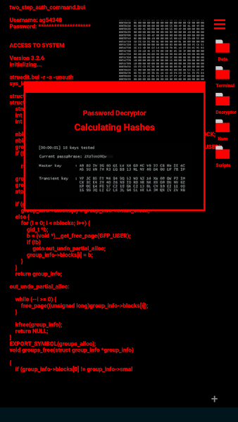 运行软件后随意敲打键盘字母都可在软件界面上显示早已准备好的有条理的代码,键盘敲得差不多了就可以按enter键或按alt键来显示拒绝访问或是允许访问的英文窗口以表示结束。