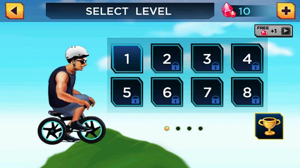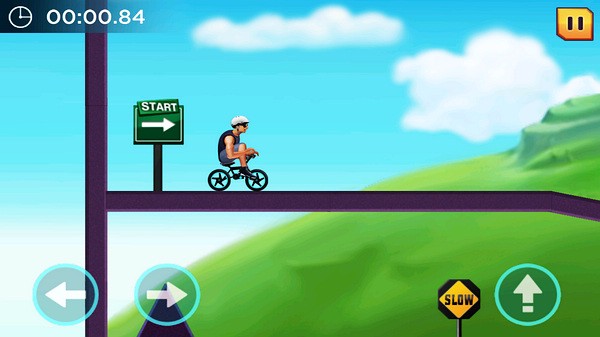 游戏设计得很巧妙,每一个关卡都有不同的背景和创意,物理模拟也很真实,自行车的稳定性需要好好控制。操作简单,左边控制方向,遇到障碍点按右边向上箭头就能飞跃。陷阱也有应对办法,比如木板掉落在陷阱上就可以安全通过。
