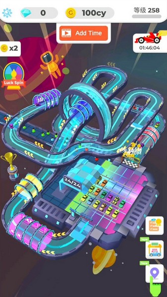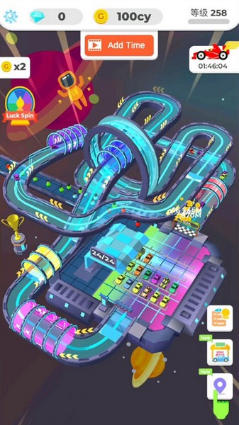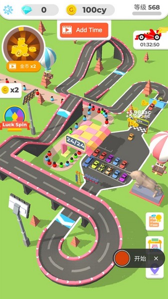 3、各种各样的赛车,不断的进行融合即可,让你的最高级赛车跑圈来赚金币。