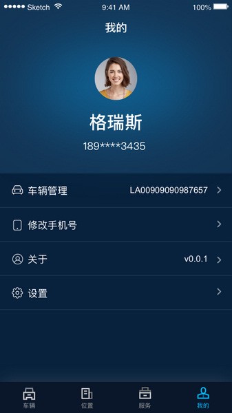 5.我的:提供个人信息维护,含账号信息管理、车辆管理、修改手机号、软件版本号、重置安全码等功能。