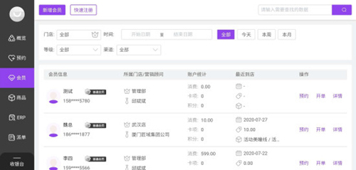 2、能够进行会员管理,并帮助统计会员消费情况,记录最近到店时间,消费项目;