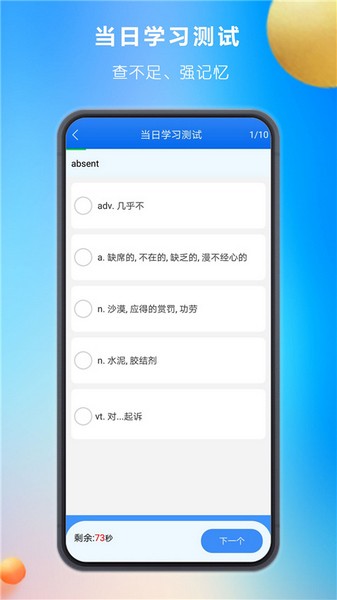 -提供学习、测试、复习环节供用户完成学习和检验的反馈过程,量化差距,快速学习。