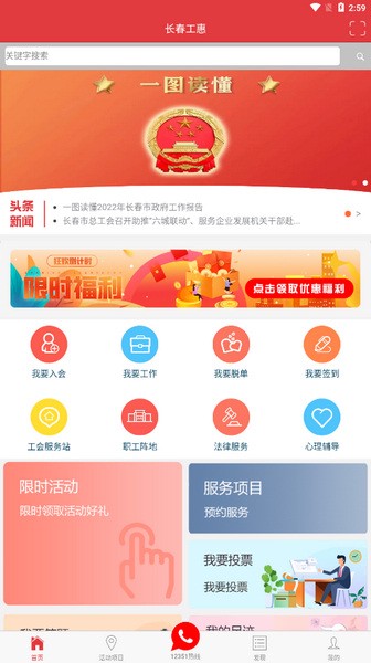 长春工惠最新版本是一款专为长春市职工准备的工会活动服务软件。在这款软件上用户可以查询长春总工会推出的各类职工活动信息,用户可以在线浏览并报名参加中意的活动。在成功报名后可以进一步取得活动相关的信息,在活动现场可以使用软件来打卡。此外,如果用户在工作生活中遇到困难也可以在平台上求助。