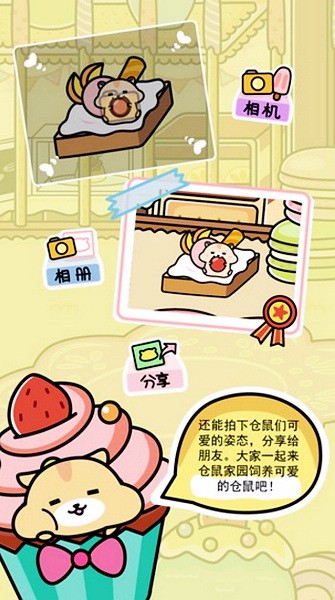 这款手游真的挺有意思的!打开游戏,首先就会被那些萌萌的小仓鼠吸引。你可以通过放置食物和玩具来吸引它们,每次看到小仓鼠们光顾家园的时候,真的会忍不住想笑。特别是那个“仓鼠不能养在一起”的提示,真的很贴心,让人感觉设计者很懂玩家的心理。