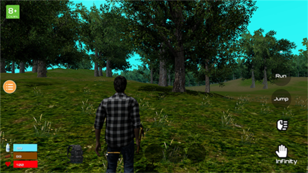 5、砍树可以获取木头可以生火,建房子等功能,要注意角色左下角健康状态及时补充。