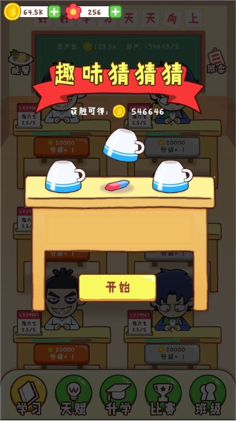 本游戏还设计了全服排行榜,可以跟其他玩家同台竞技,pk学生。有秒产排行榜、升学排行榜、学习排行榜等。