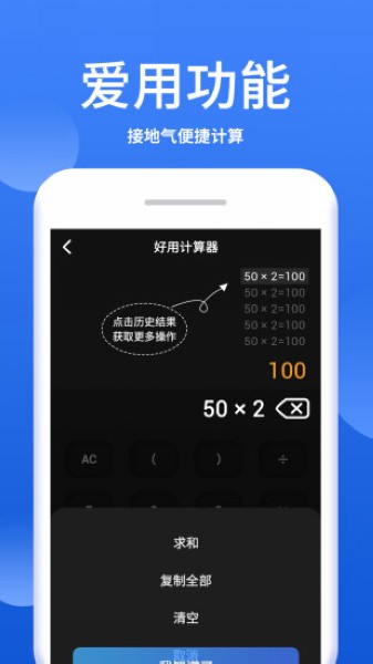 3、人性化操作设计,历史记录查看,输入内容编辑,公式结果复制。