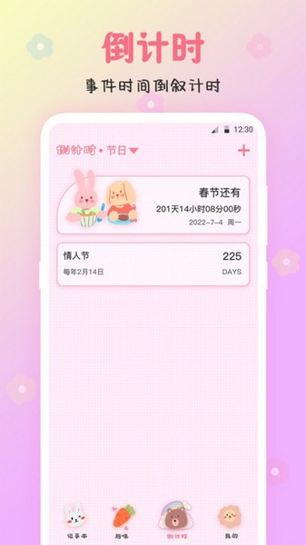 帮你记录重要的日子,考试倒计时、生日提醒、节假日倒计时、各种纪念日、情侣恋爱天数、还信用卡的日子,倒数计时,替你存下珍贵的时光痕迹。