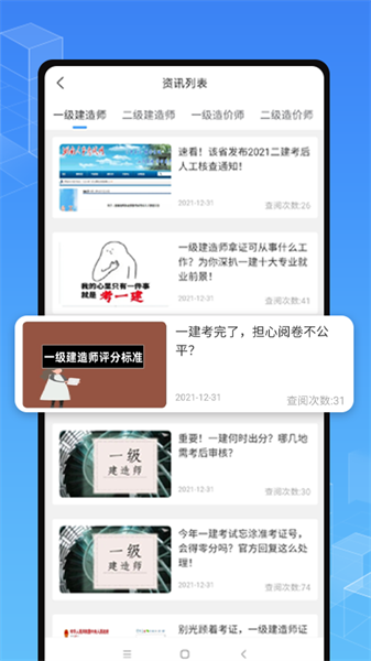 考试资讯通知:用户可在首页-考试资讯中链接您想了解的最新行业资讯,以及备考资讯