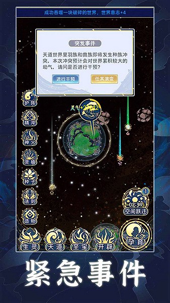 通过建立和升级各种法则,以及修复空间裂痕和建设护阵来使得世界的发展更加稳定,同时天道创造中还能通过投放稀有神物等操作引起生灵种族之间的争夺,形成合理的良性竞争以便在某些阶段能更快地成长。