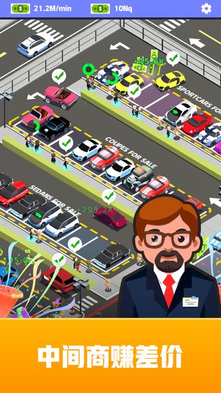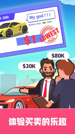游戏提供了多种玩法,比如雇佣助理和销售人员帮助与客户交流,培训员工提升服务质量,计算每辆二手车的底价以获取最大利润,以及通过完成任务获得额外奖励。游戏采用卡通风格,简单直观,但需要玩家合理定位目标客户群体,避免同时收购价格差异太大的车辆。