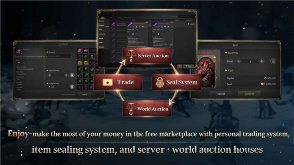 游戏有服务器交易所、跨服交易所,也会开放个人一对一交易,能卖的东西很多,上面说的变身、娃娃都可以进行封印交易。