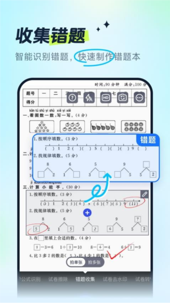 1、用户可以将扫描识别出来的错题添加标签、分类管理,方便查看错题。